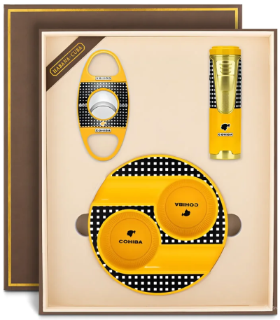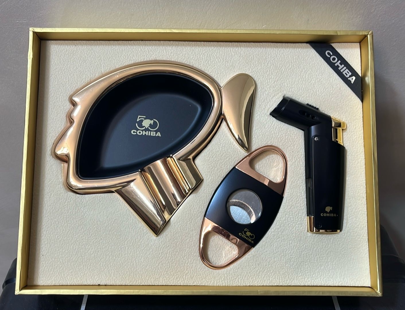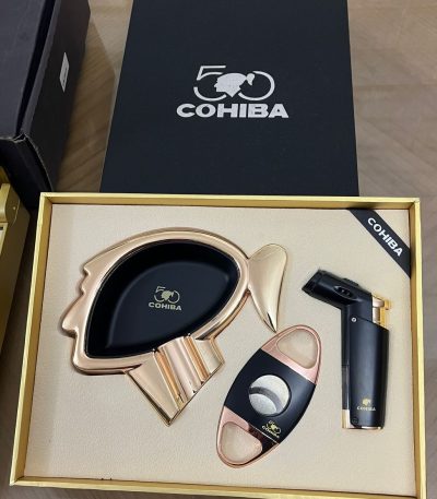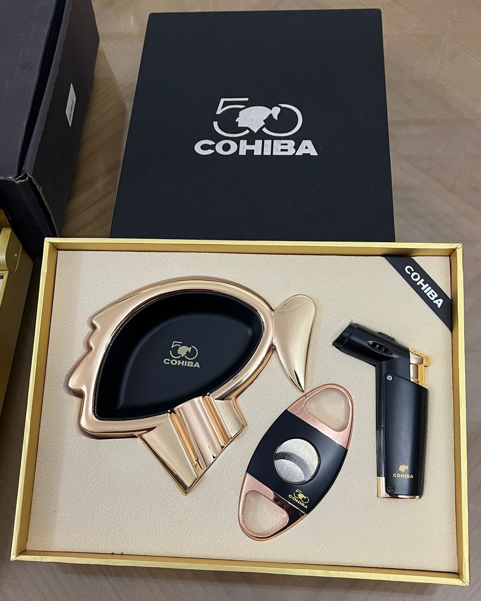 طقم سيجار Cohiba (3 قطع – لون أسود × ذهبي)