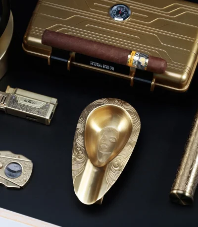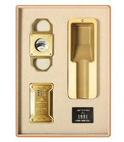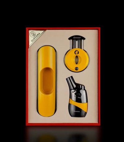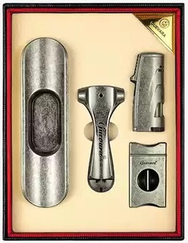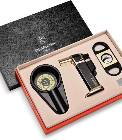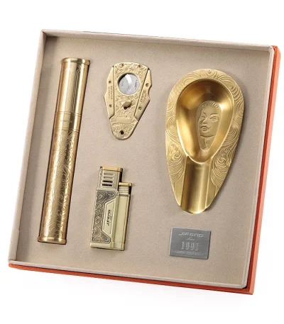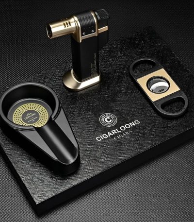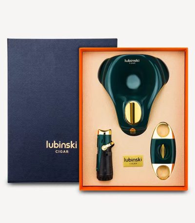 اكتشف الفخامة والأداء مع هذا الطقم المتكامل. يتضمن ولاعة قوية وقطاعتي سيجار بتصميم أنيق باللون الأخضر الداكن والذهبي. الهدية المثالية لكل مناسبة.
